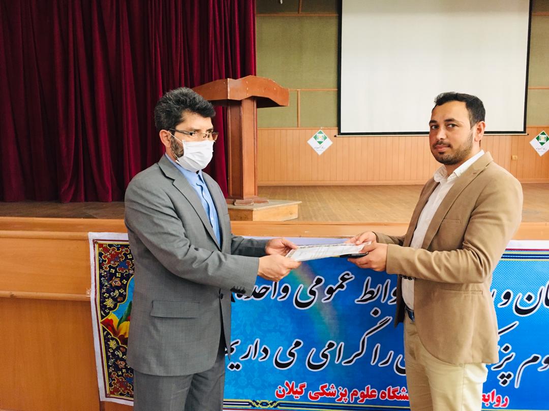 به گزارش پایگاه اطلاع رسانی دانشگاه علوم پزشکی گیلان( وب دا)؛ فیروز نصیر زاده- مدیر روابط عمومی دانشگاه علوم پزشکی گیلان صبح امروز چهارشنبه 31 اردیبهشت ماه در نشستی که با مسوولان روابط عمومی مراکز درمانی، آموزشی و پژوهشی رشت و دانشکده ها، در سالن اجتماعات بیمارستان الزهرا (س) رشت برگزار شد از تلاش های مسوولان روابط عمومی به مناسبت هفته روابط عمومی و ارتباطات و همچنین در زمینه اطلاع رسانی کرونا تجلیل کرد.