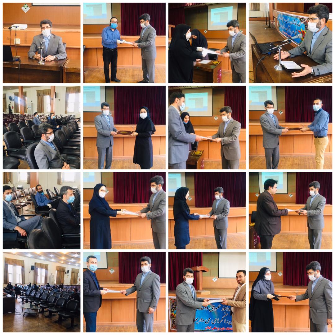 در پایان ضمن تجلیل از فعالیت های مستمر و قابل قبول مسوولین روابط عمومی ها از یکایک خواست با تلاش مضاعف،برای ارتقاء سطح سلامت جامعه وی را یاری نمایند./ای