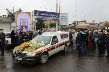 علمی دانشگاه علوم پزشکی گیلان بابدرقه مسئولین دانشگاه، اساتید، جامعه پزشکی پس از تشییع در بیمارستان